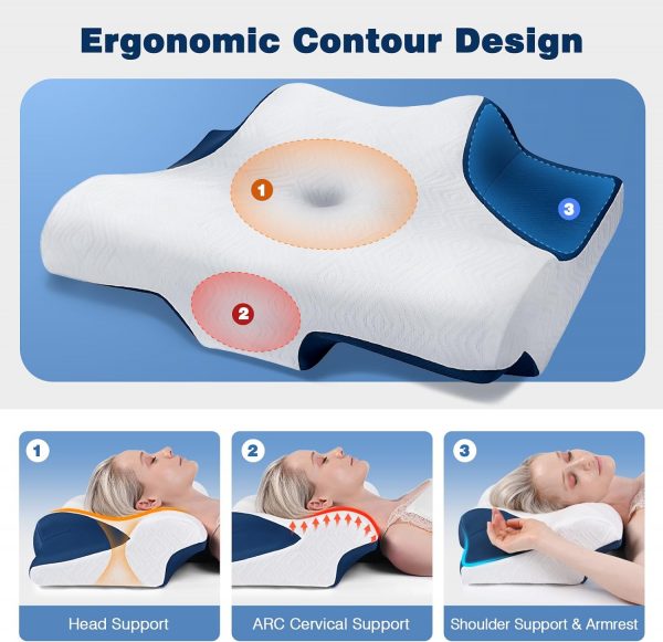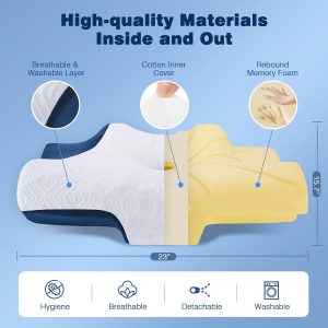 【Optimized Ergonomic Design】Our pillow boasts an ingeniously contoured shape, with its 15-degree tilted hollow concave surface, expertly cradles your head, maintaining the natural curve of your neck and aligning your spine seamlessly. The side cutouts provide a comfortable spot for your top arm, preventing shoulder hunching. The result? Wake up feeling refreshed and free from any nagging neck and shoulder discomfort.
