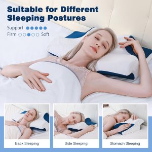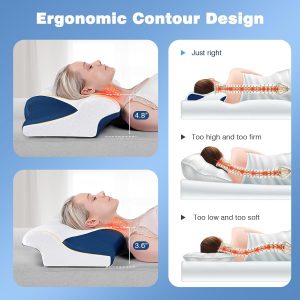 【Dual Height Options for All Sleep Styles】Measuring 22.8×15.7×4.8/3.6 inches (L x W x H). Our cervical pillow provides two personalized height choices, catering to various sleep preferences. This ergonomic and orthopedic pillow is crafted for different sleeping positions, including side sleeping, supine, stomach sleeping, back sleeping, and low pillow sleepers.