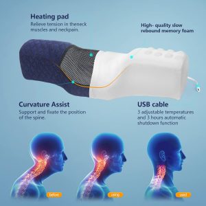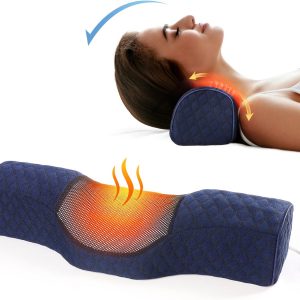 Neck Roll Pillows for Pain Relief Sleeping, Heated Memory Foam Cervical Neck Support Pillow for Bed with USB Graphene Heating for Stiff Neck Pain Relief (Dark Blue)