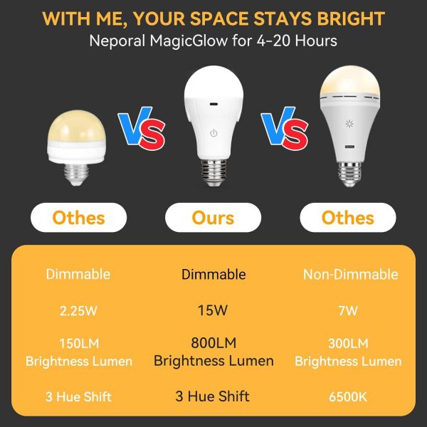 Neporal Rechargeable Emergency Light Bulbs, Choice of 200,000+ US Families
