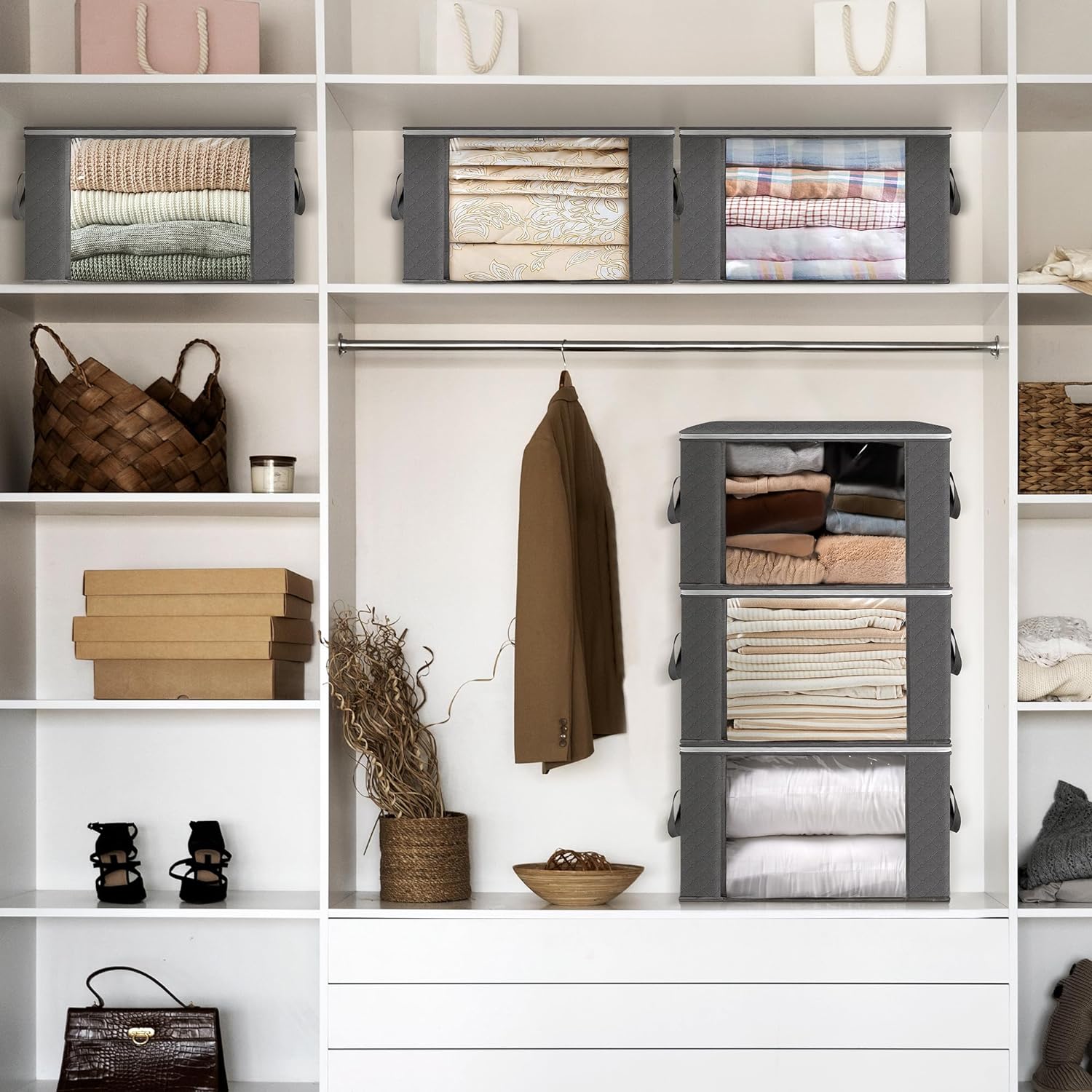 Our Stackable Clothes Storage Bag is ingeniously designed to effortlessly stack clothes, towels, pillows blankets, toys, pants, allowing you to make the most of your available space. Create a tidy and space-efficient storage solution that adapts to your needs.