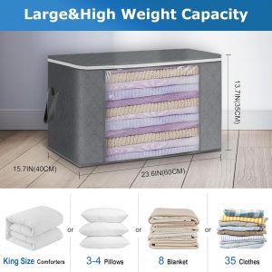 🔷LARGE CAPACITY – Each bag measures 23.62″ x 15.75″ x 13.77″, providing ample space for all of your storage needs. Perfect for storing blankets, pillows, clothes, toys, books, or other household items.