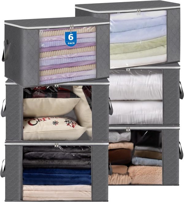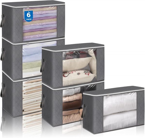 💯PREMIUM QUALITY – Our 6 pack clothes storage bags are made of high quality, thick and durable non-woven fabric with reinforced handles that can hold up to 25 lbs. They are easy to clean with a damp cloth and can be used over and over again.