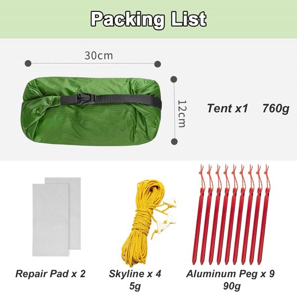 Lightweight and Ultralight: Weighing only 2 pounds, this tent is perfect for backpacking and hiking.
