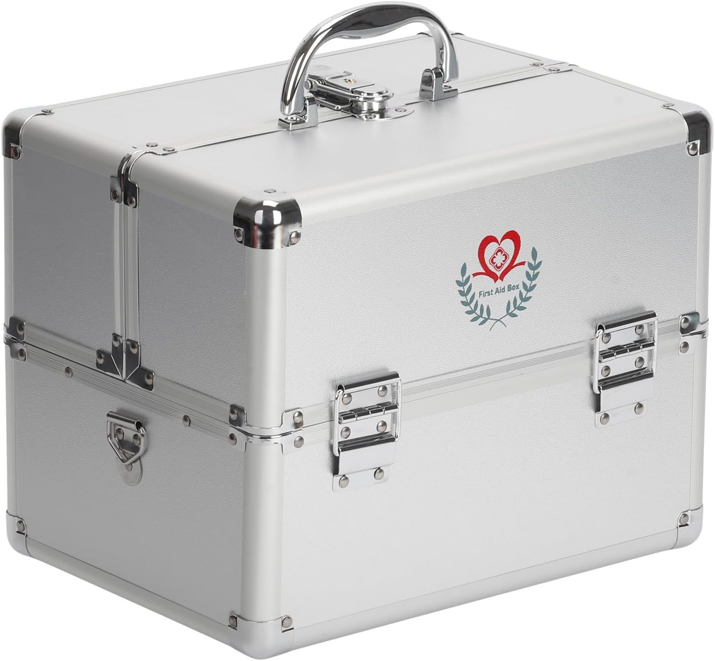 【Large Capacity】Our locking medicine storage box is made of aluminum alloy frame. It is 11.81 x 8.54 x 9.45 inches which can accommodate various medications in your home life.
