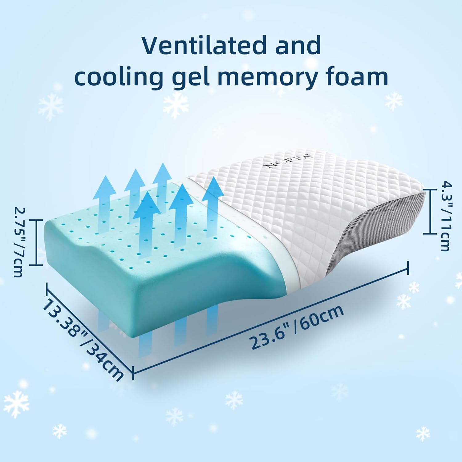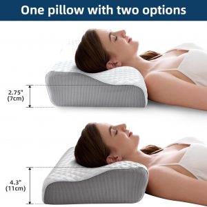 1. Product information : Size: 23.6″x13.38″x4.3″/2.75″ (60x34x11/ 7 cm). This ventilated gel memory pillow takes 4-48 hours to recover its original shape.