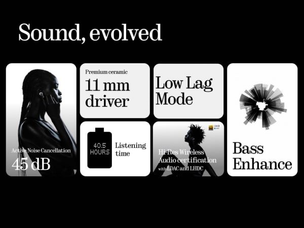 Custom Ceramic Driver: Nothing Ear ultra compact but beyond powerful. Our 11 mm driver delivers an unbeatable audio experience. Coupled with a new ceramic diaphragm, we’ve increased airflow by 10% within each bud. For less distortion and richer clarity