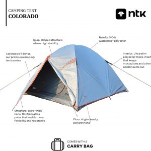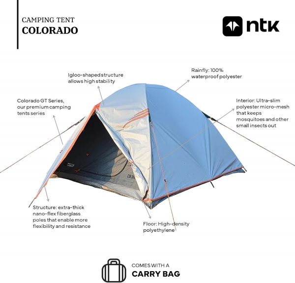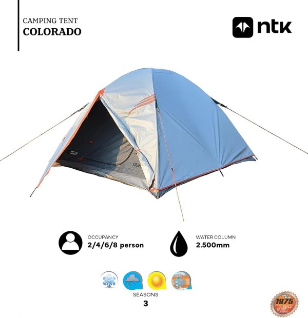 NTK Colorado 2 Person Outdoor Dome Family Camping Tent, Silver Rainfly, 100% Waterproof 2500mm, Easy Assembly, Durable Fabric Full Coverage Rainfly – Micro Mosquito Mesh