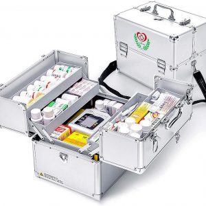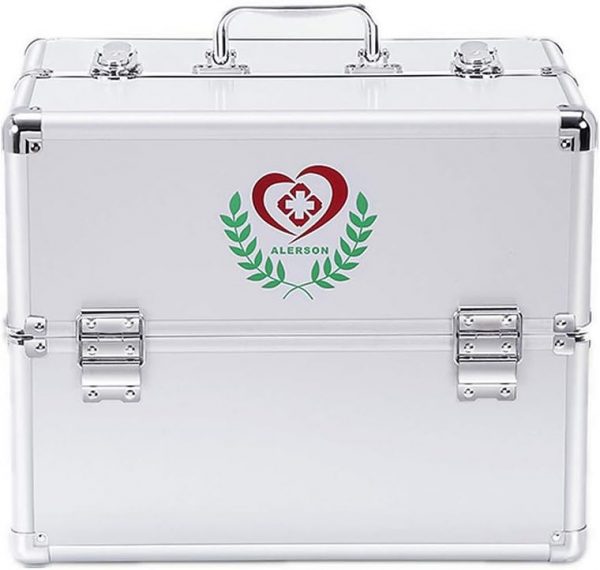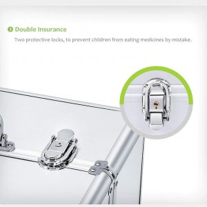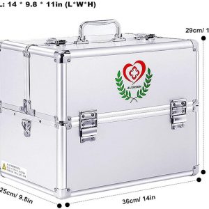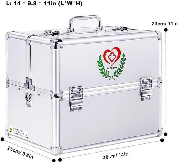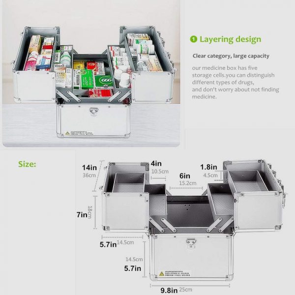 SIZES— L: 14 × 9.8 × 11inch; for pills,works not only as a medicine cabinet box,also as a organizer case for jewelry,watches,make ups,personal valuables,etc.