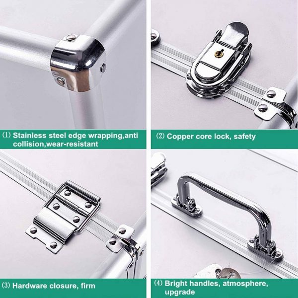 This medication box comes with 2 keys and a shoulder strap,which can be adjusted for your reference.The edges are made of aluminum alloy,whole body made of sturdy MDF and PVC.It is not a “medicine safe”,but can not easily break in and works in great way to keep the little hands out of your medicine.