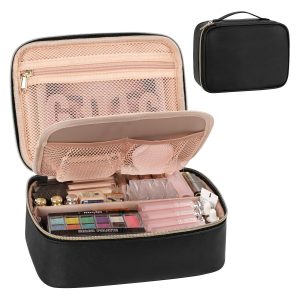 【Premium Material】This makeup bags surface material is made of high-quality PU leather. Durable, waterproof inside and outside, scratch-resistant, anti-collision, easy to keep clean. large view opening which can easy to access your cosmetics. (Note: Cosmetic Accessories Not included).