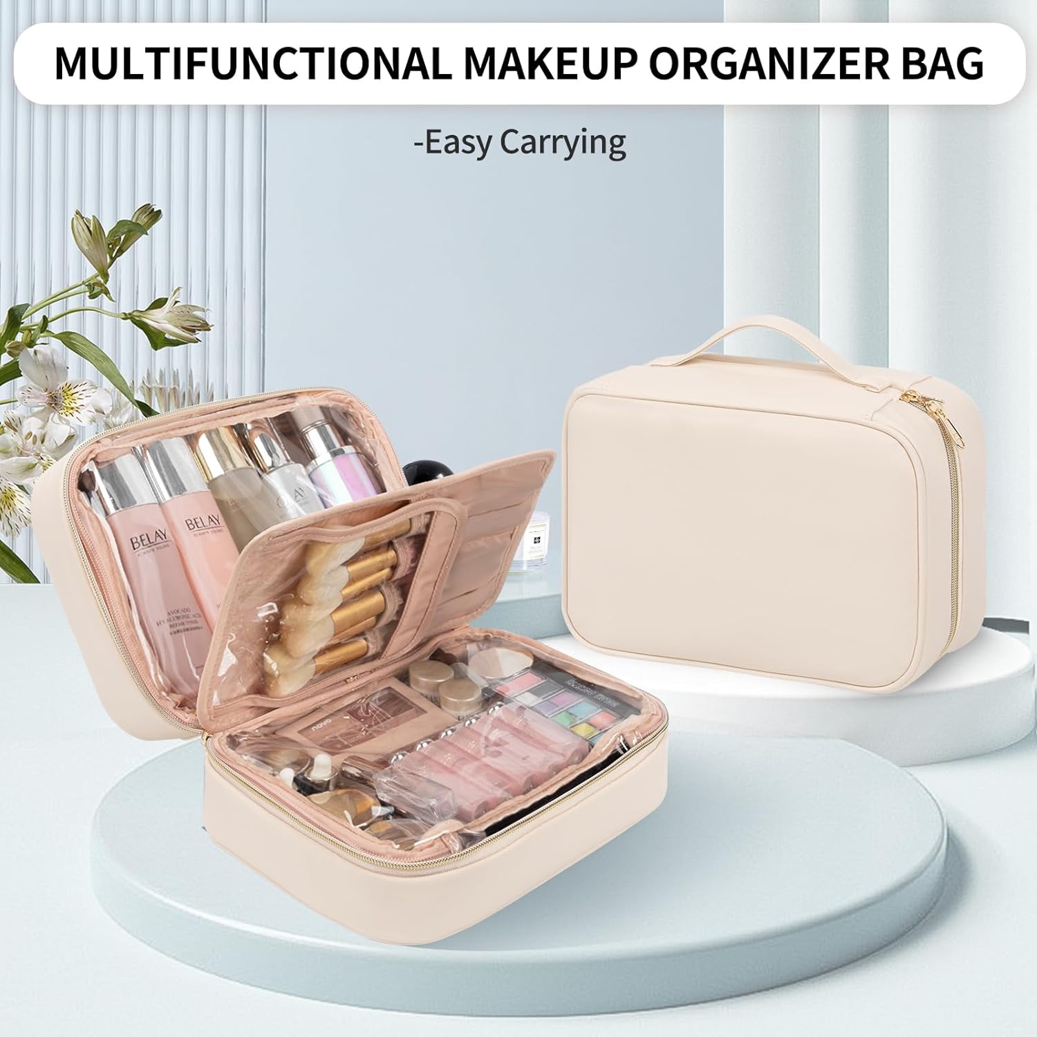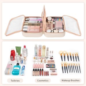 【Large Capacity 】- Cosmetic Bag size:9.92*3.93*7.0(in). The spacious makeup organizer bag can hold your full-sized cosmetics and brushes, make up tools, toiletries, shampoo, conditioner, toothbrushes or travel essentials.Easy storage and orderly.