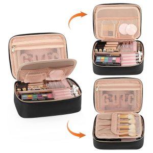 【Premium Material】This makeup bags surface material is made of high-quality PU leather. Durable, waterproof inside and outside, scratch-resistant, anti-collision, easy to keep clean. large view opening which can easy to access your cosmetics. (Note: Cosmetic Accessories Not included).