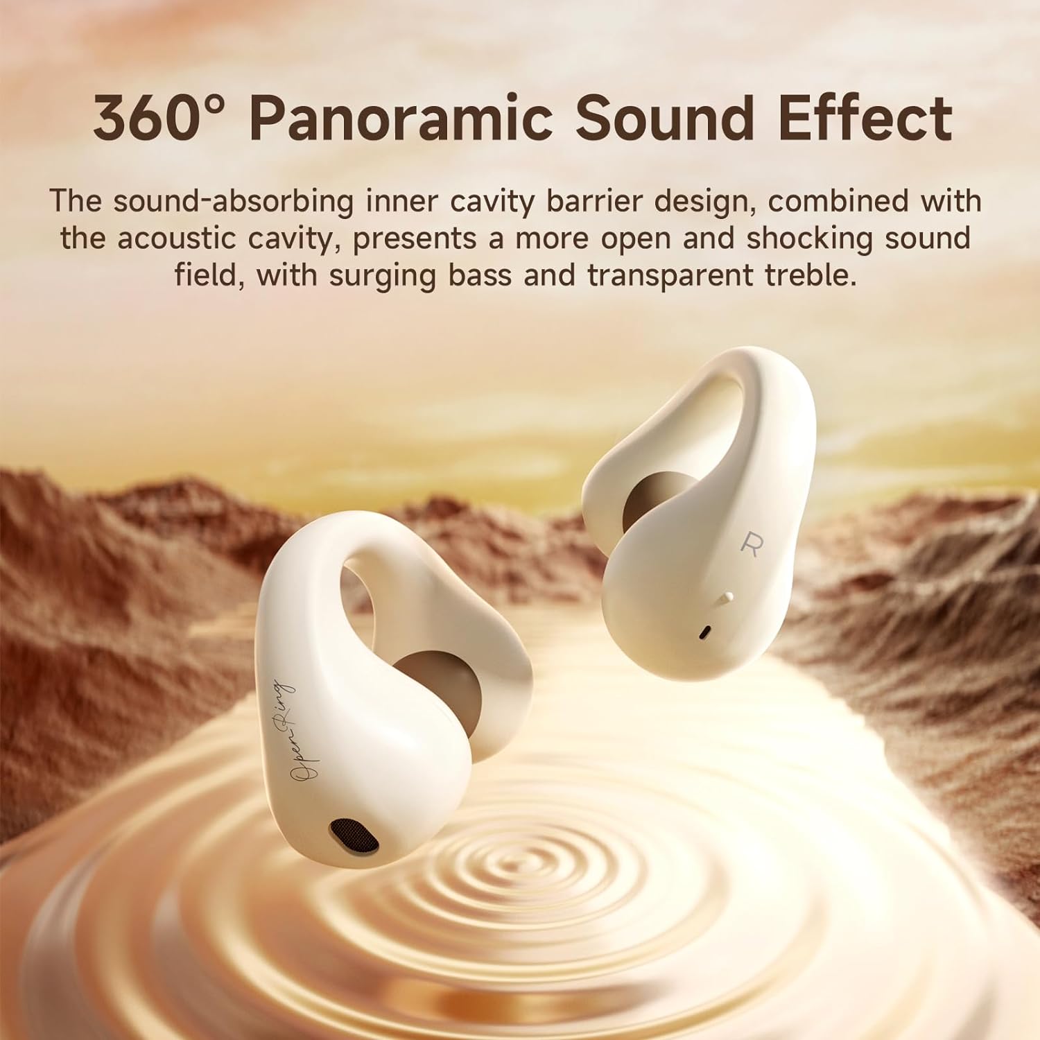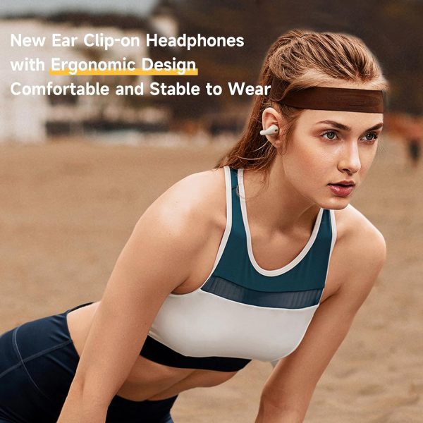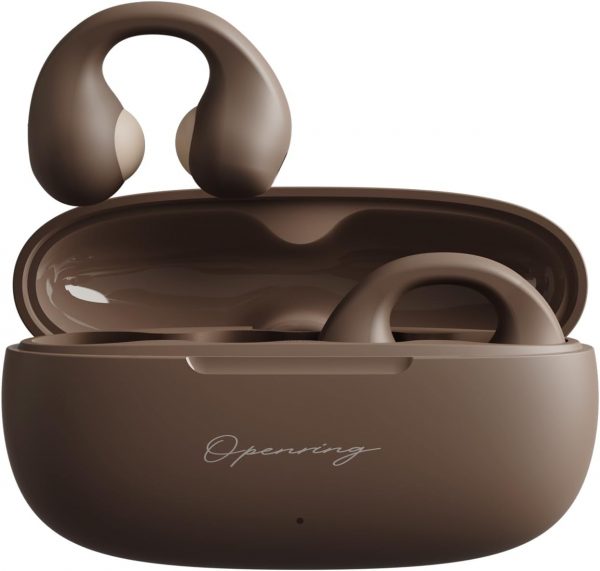 Open Ear Clip Headphones, Wireless Earbuds Bluetooth 5.3 Sport Clip-on Earphones Built-in Microphone,Waterproof, 30H Playtime Wireless Bluetooth Ear Buds Compatible with Android iOS/Samsung-Brown