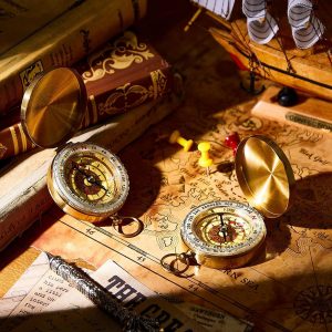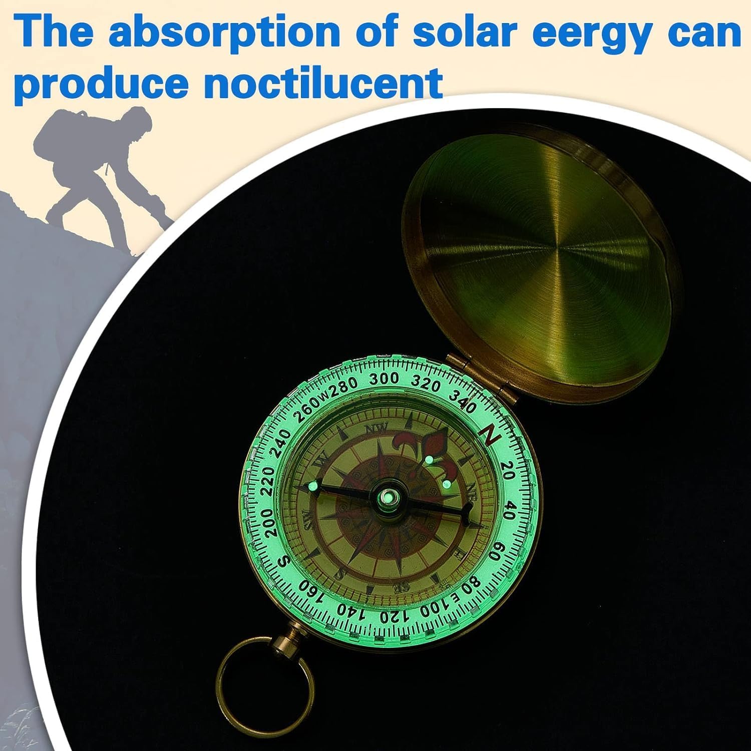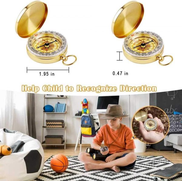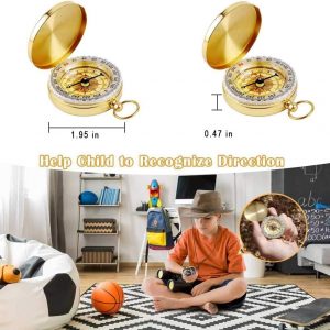 Orienteering Compass Hiking Backpacking Camping Boating Survival Compass, Golden Metal Pocket Watch Style Compass for Kids Scout Activities Hiker Camper Outdoor Waterproof Navigation Tool