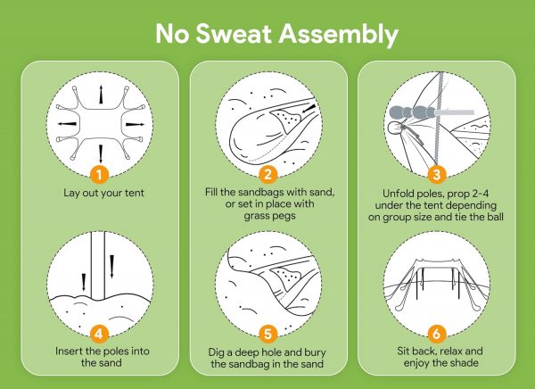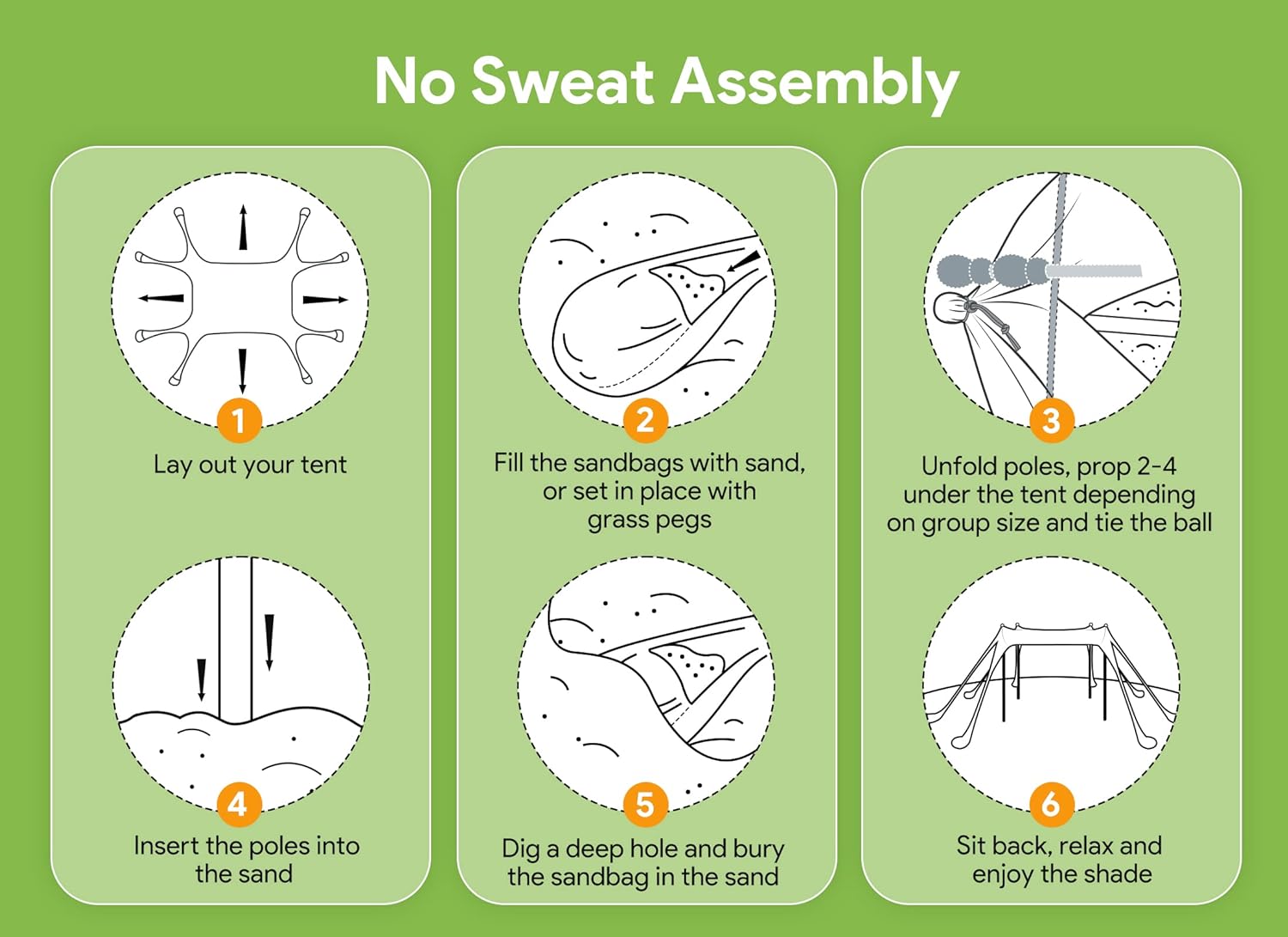 Quick and Easy Setup: Osoeri beach shade canopy can be set up by a single person within 5 minutes