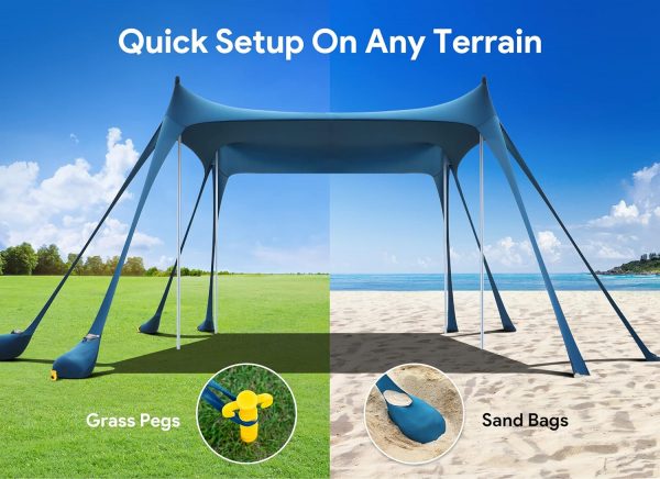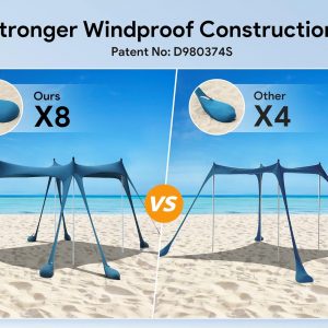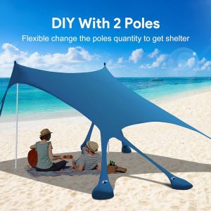 Large Size Beach Canopy: The shaded area of the beach tent sun shelter will reach 10×10 ft, which can hold up to 8 people for beach parties or outdoor picnics