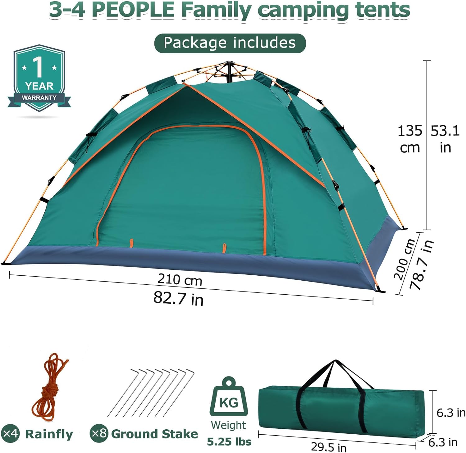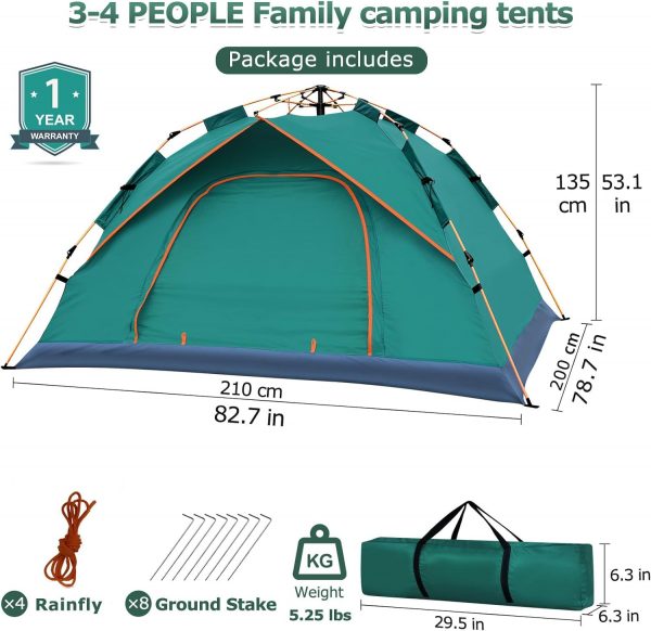 OSWIN Tents for 3-4 People – Dome Camping Tents, pop-up Tents, Instant Tents, Wind and rain Backpacking Tents, Four Seasons Tents