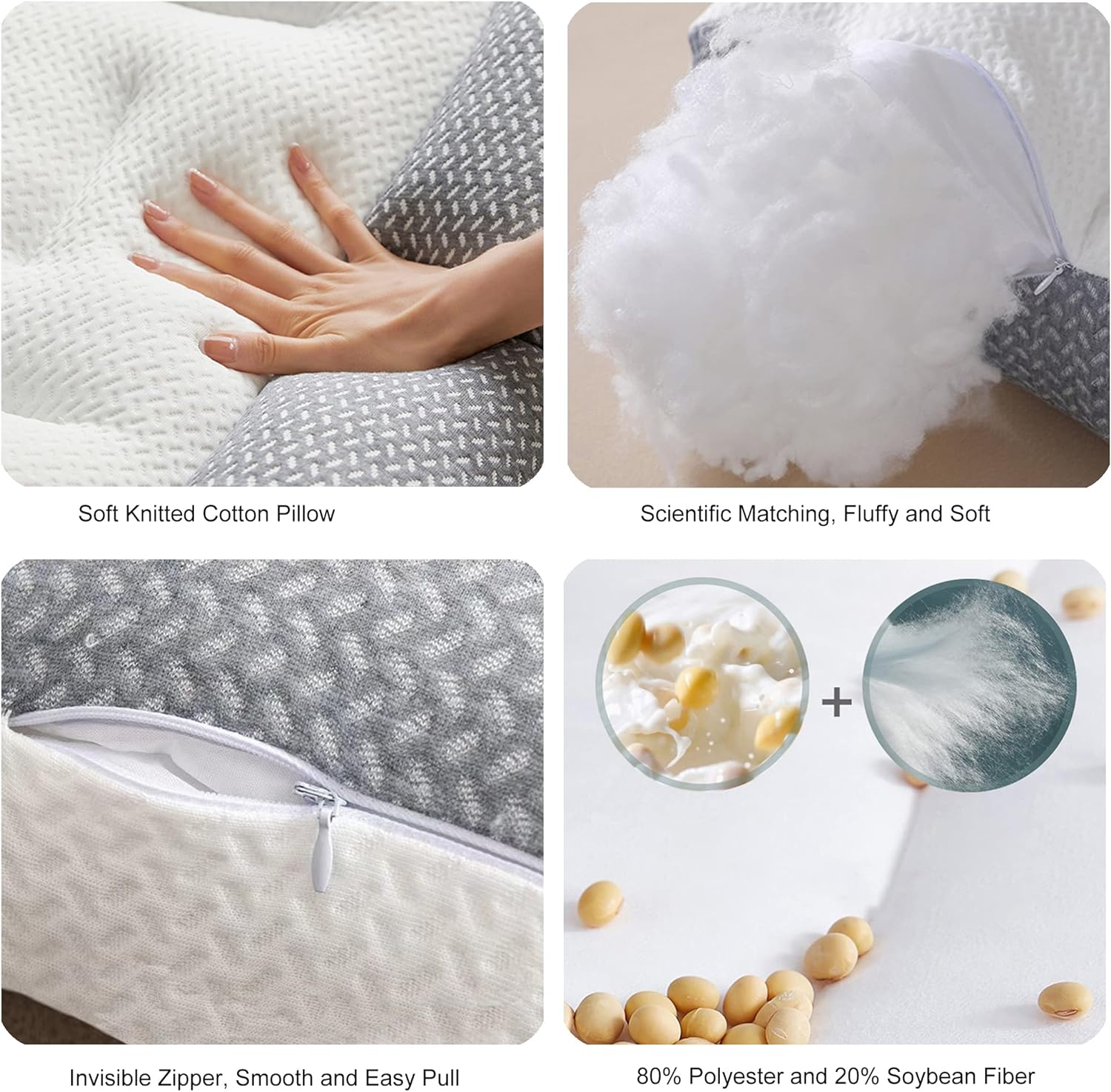 Quick rebounds with fluffy fiber, which contains 80% Polyester plus 20% Soybean Fiber