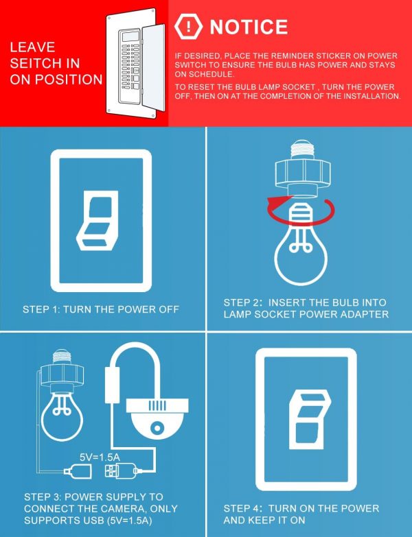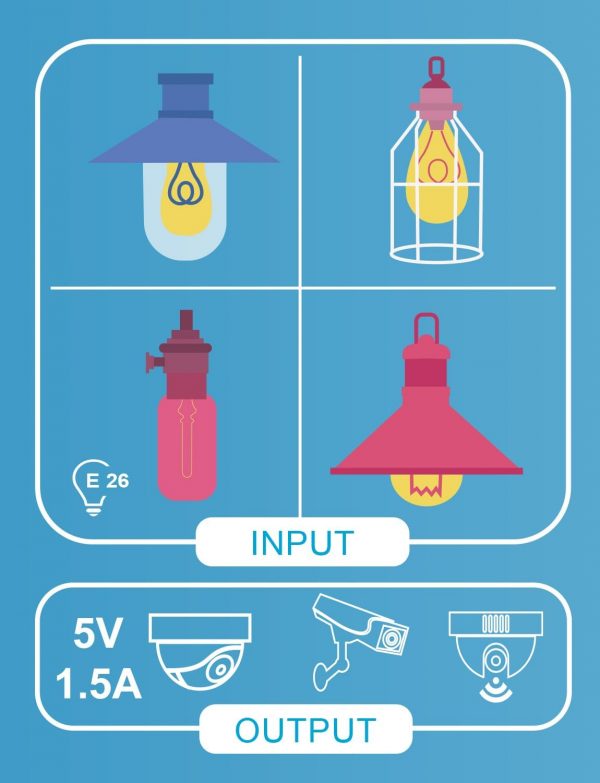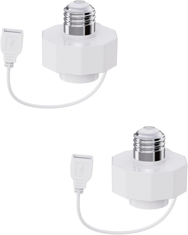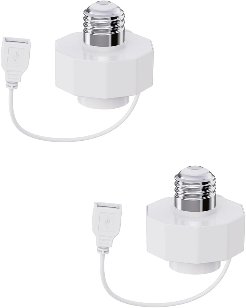 Outdoor Camera Charger Adapter Light Socket USB Charging Station Power Lamp Charger Light Bulb Socket Adapter, USB Charger Ports 5V=1.5A(Not Included Smart Bulbs)(Two Pieces)