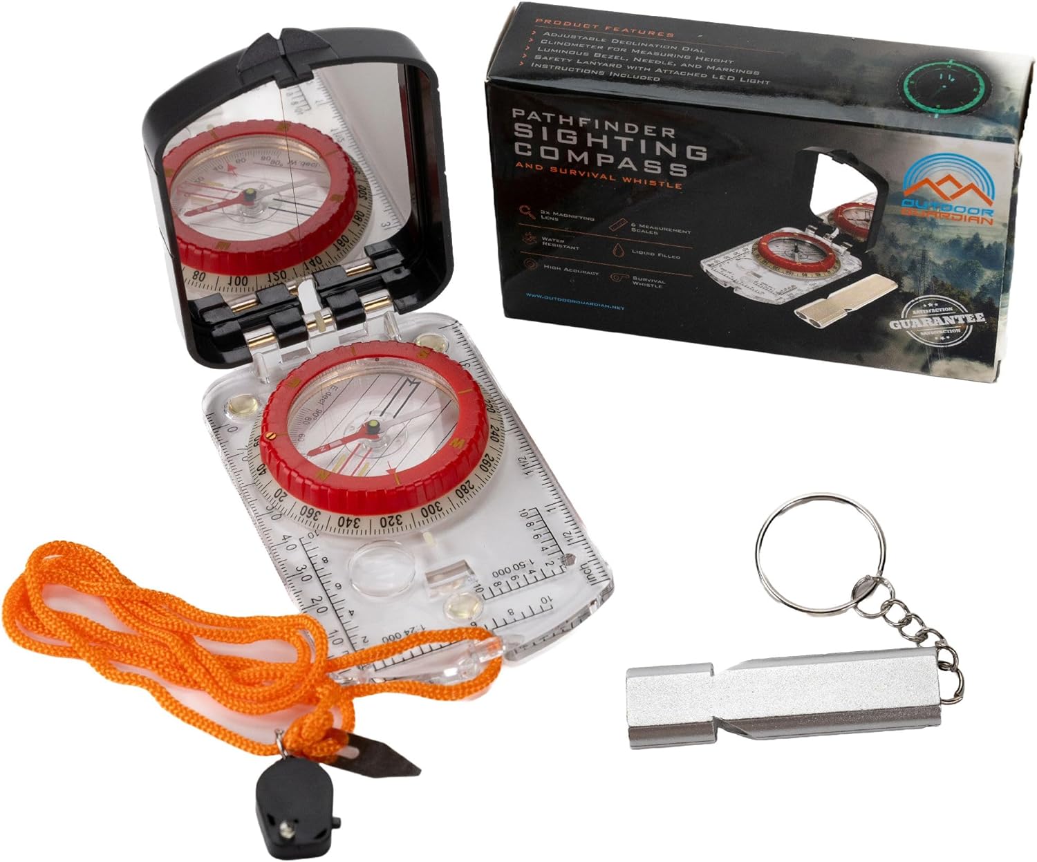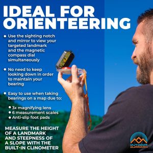 Outdoor Guardian Pathfinder Camping and Hiking Compass – Camping Accessories, Orienteering Compass with Clinometer, Adjustable Declination and LED, Survival Gear and Equipment, Camping Gifts