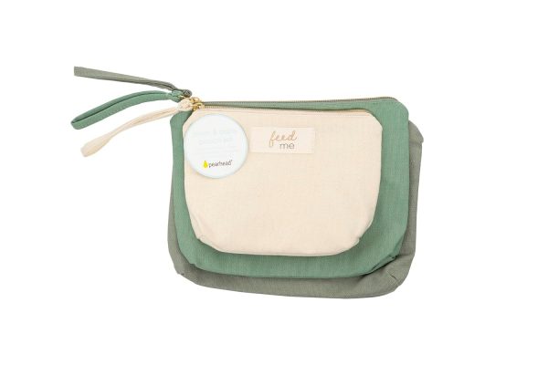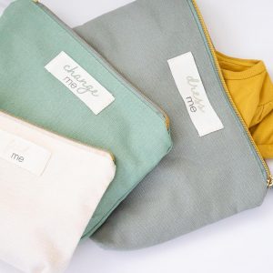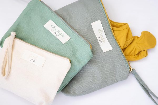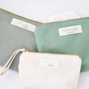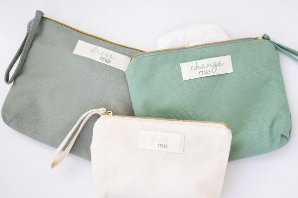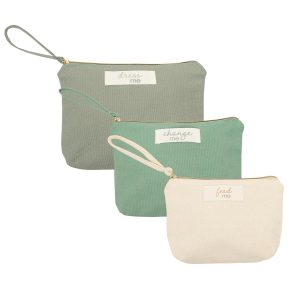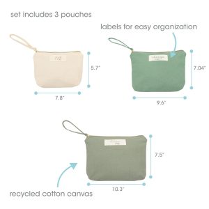 Pearhead’s 3 Piece Baby Travel Pouch Set is the ultimate solution for busy parents and their adorable little ones. Crafted with durable recycled cotton, this set of zipper pouches are designed to make travel time a breeze. These adorable muted green and neutral cream bags labeled “Feed Me,” “Change Me,” and “Dress Me,” are designed to be your ultimate companions when you’re out and about with your little one. The “Feed Me” pouch keeps your baby’s feeding essentials organized, making mealtime a breeze. The “Change Me” pouch is a lifesaver for quick diaper changes, holding diapers, wipes, and everything you need for clean and comfortable diapering on the go. Lastly, the “Dress Me” pouch ensures your baby’s outfits are readily accessible and neatly stored, so you can keep them looking adorable wherever you are. Our travel bags zip shut with long carrying loop handles to easily secure your essentials. Whether you’re heading to the park, a playdate, or a family vacation, Pearhead’s baby accessory pouch set is your stylish go-to baby essential, making sure you’re prepared for any adventure with your baby or toddler. Give this modern baby gift to a friend or loved one as a gender-neutral baby shower gift. Stay organized while your family is on-the-go with Pearhead’s 3-Piece Baby Pouch Set.