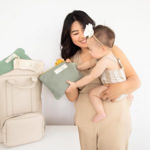 Stay Organized: Keep your essentials and baby’s must-haves neatly organized in 3 dedicated pouches – labeled “Feed Me,” “Change Me,” and “Dress Me” in modern muted green and neutral cream colors