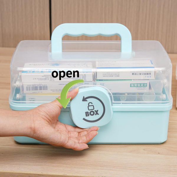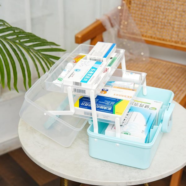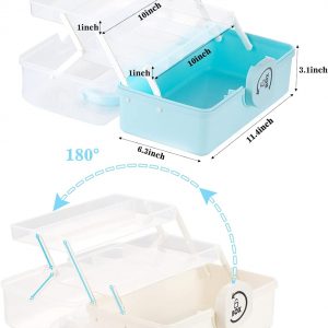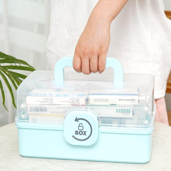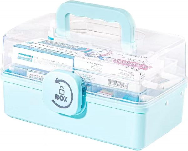 The storage box has 2 trays, each tray has a compartment card slot, three layers can meet the storage needs of different sizes, and the transparent cover is clear at a glance, which can help you find what you need faster. The first aid kit is available in two colors.