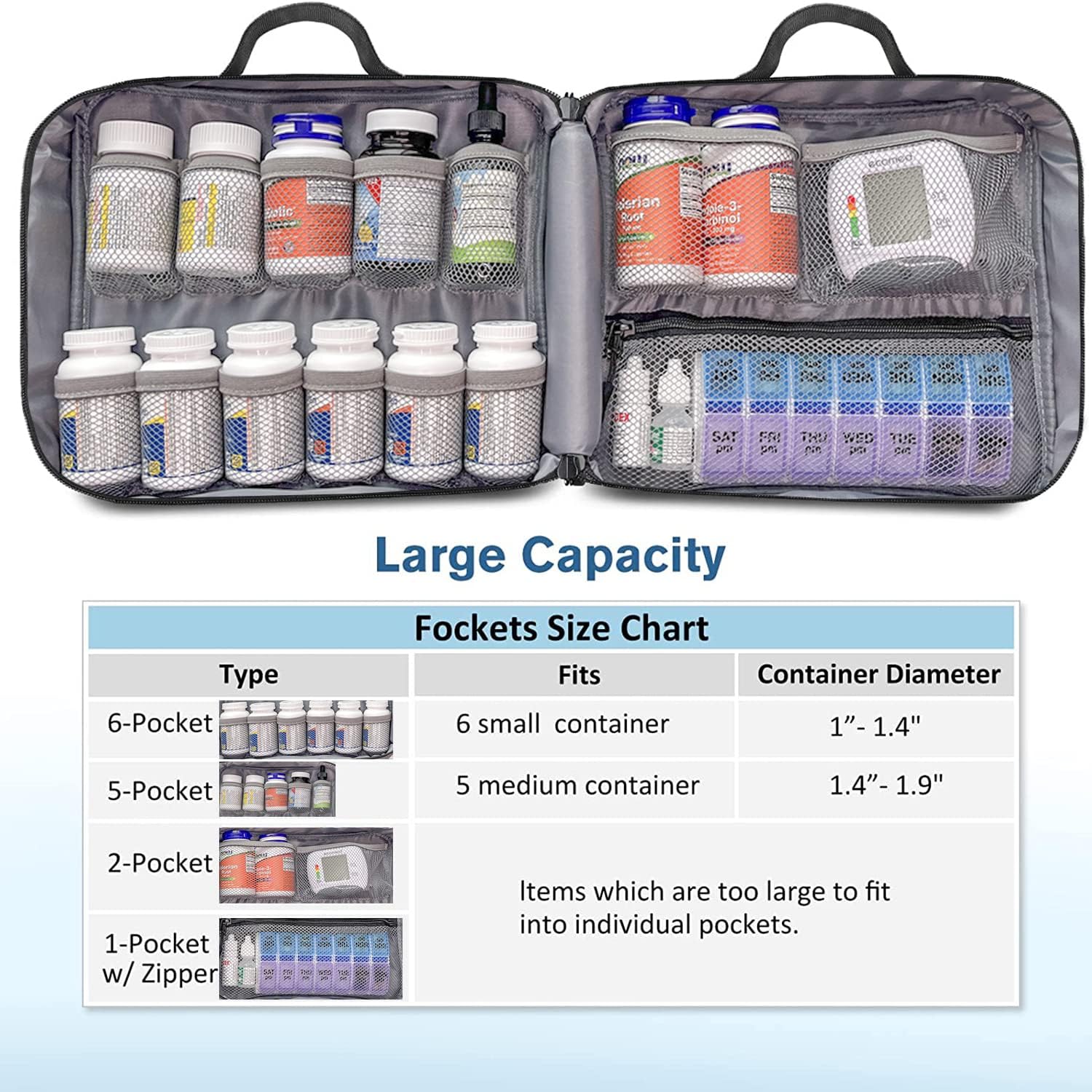 * Medicine bag for traveling & home storage is an ideal choice for keeping your pills, vitamins and other medical supplies organized.