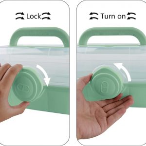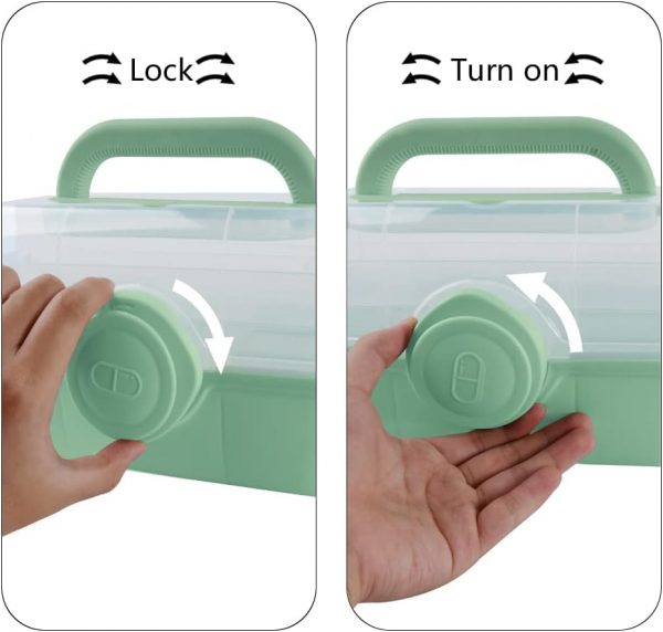 Portable craft storage box with lock,prevent children’s open buckle design.Turn left to open, turn right to lock the box,dust-proof, moisture-proof.Suitable for family, car, school, travel, camping, office, health clinics, hospitals.