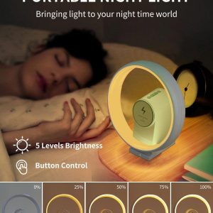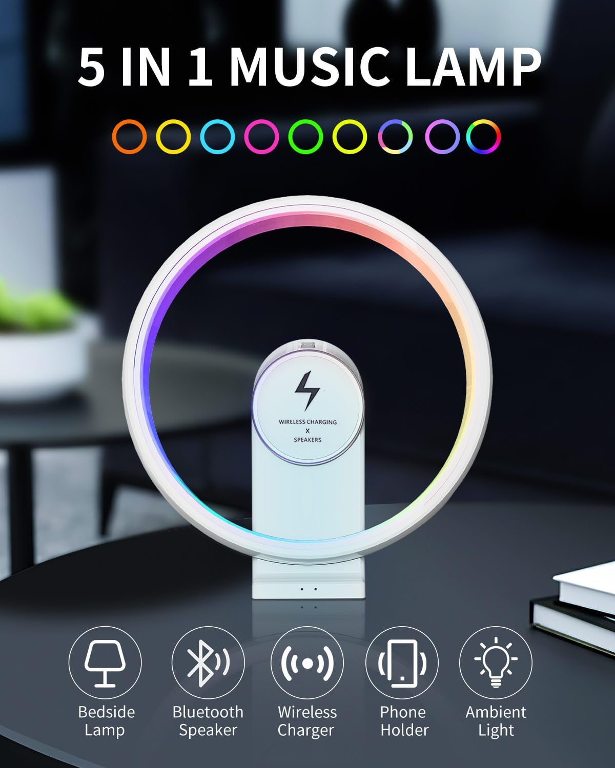 5 IN 1 KIDS BEDSIDEK LAMP: Combines a Bluetooth speaker, wireless or USB charging, night light and phone stand, making your rest more comfortable. Playing favorite music to relax yourself; the wireless charging powers your phone ; and the variable light effects create a warm atmosphere for you and your family to enjoy a good night.