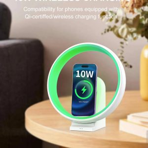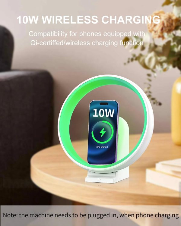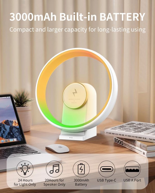 10W WIRELESS CHARGING STATION: Features a built-in 3000mAh battery for long-lasting use. One charge can provide up to 2.5 hours of music playback and night light use at the same time. Supports any phone with a wireless charging coil, overload protection ensures your phone safety. (included a Type-C Cable and a 5V/3A adapter )
