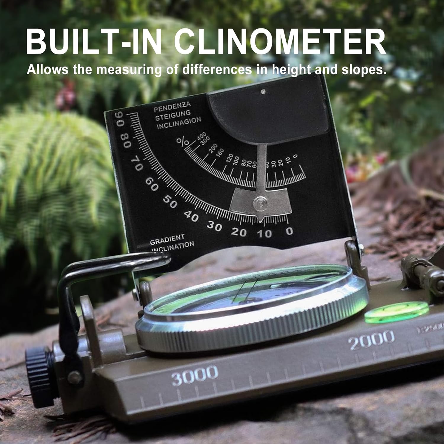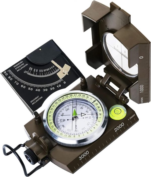 MULTIFUNCTIONAL TOOL – This compass features a clinometer for measuring height and slopes, a luminous function, and magnifying viewer for easy reading in low-light conditions, making it a useful tool for any outdoor adventure.