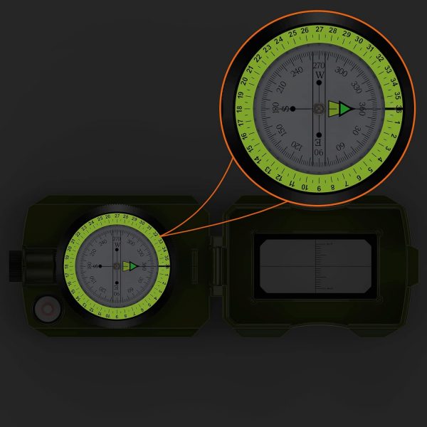 Multiple functions: In addition to slope and direction, many compasses with slope also offer a range of other features, such as temperature readings, altitude measurements, and military navigation compass with fluorescent for easy use at night. This makes it a versatile tool for a wide variety of outdoor activities.