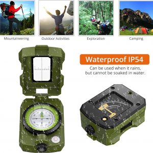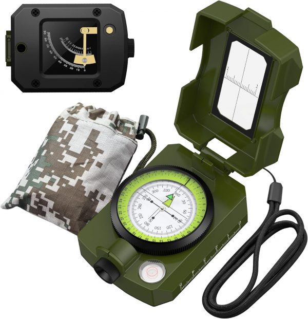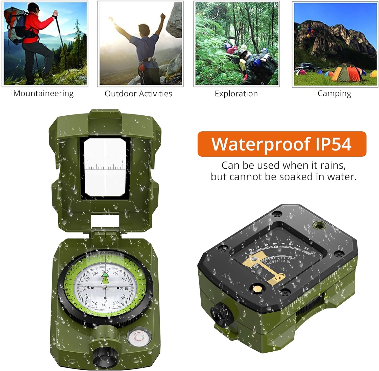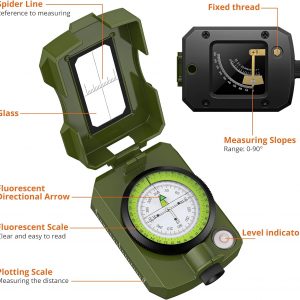 Durability: Collapsible metal lid, floating compass dial with 360° scale, adjustable prism lens, waterproof and shockproof. A high-quality compass with slope is built to withstand harsh outdoor conditions, with a rugged construction that can withstand drops, impacts, and other hazards.
