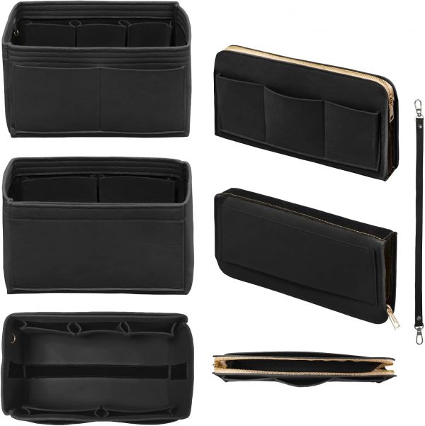 【UPDATED PRACTICAL DESIGN — ROOMY POCKETS】There’s no way to put anything in the narrow, tight and small pockets that make the whole purse organizer insert useless. Our felt organizer insert has multiple pockets of varying size that can accommodate things as small as coin, earring, pen and lipstick tube, to larger and roomy pockets for phone, glass, or small notebook, etc.