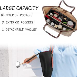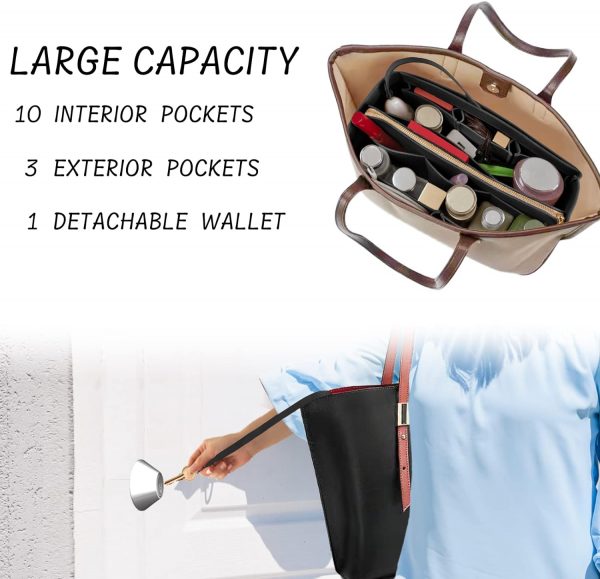 【DETACHABLE WALLET POCKET with QUALITY ZIPPER & KEY CHAIN】Large capacity tote bag organizer insert with total 13 pockets, 3 exterior pockets, 10 interior pockets with detachable wallet zipper pocket in the middle which can keep valuable articles like phone, cards, cash, jewelry or used as a separate wallet after detached. Extra detachable long felt keys chain help finding the keys easily.