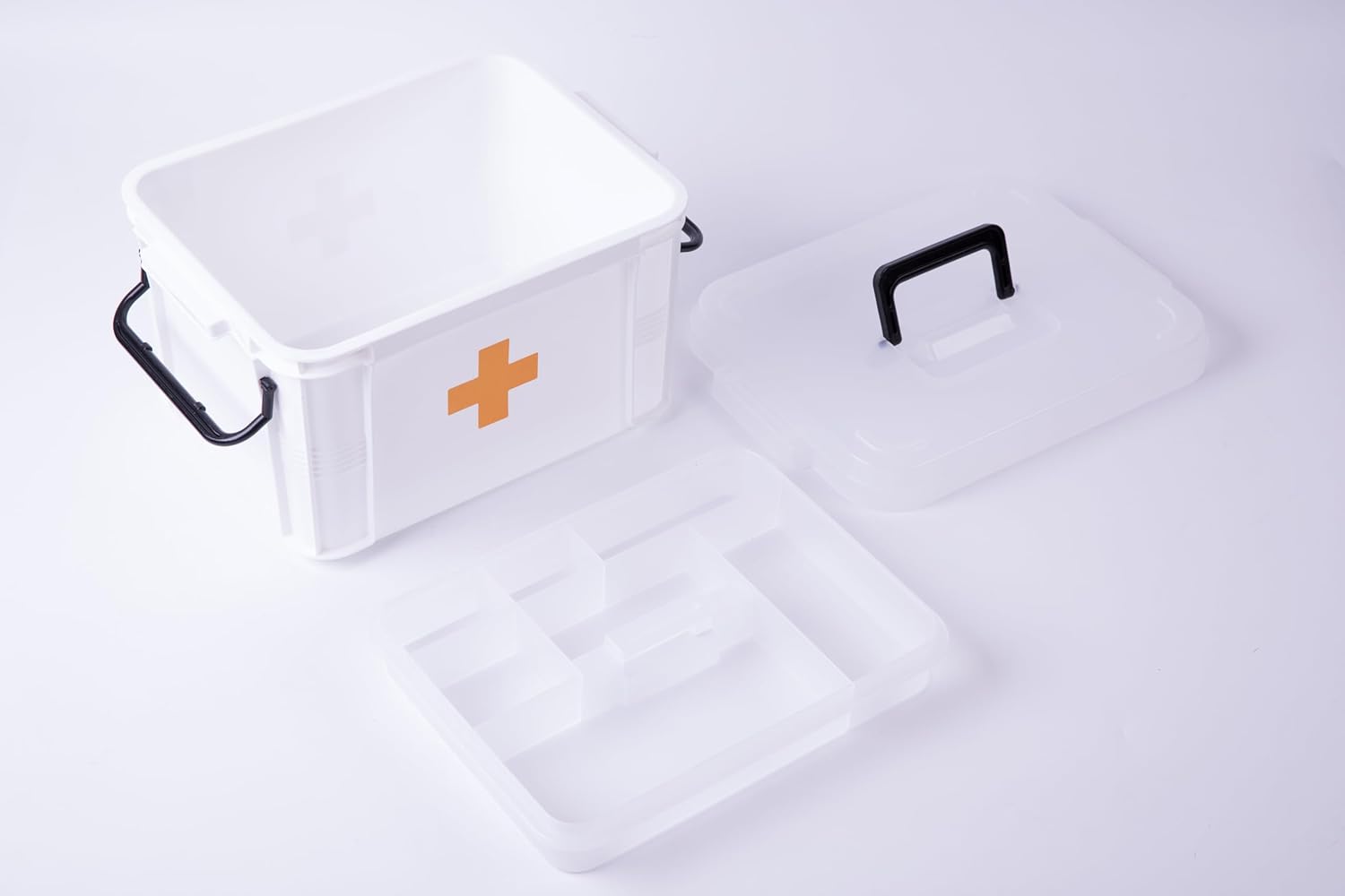 Empty, plastic first aid kit is small enough to take with you or keep in your car, boat or work vehicle. It seals closed to keep out moisture and dust. Includes removable organizer tray with small compartments. Fill with the most needed first aid supplies to keep you, your family, and friends safe.