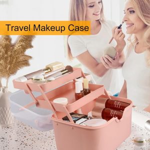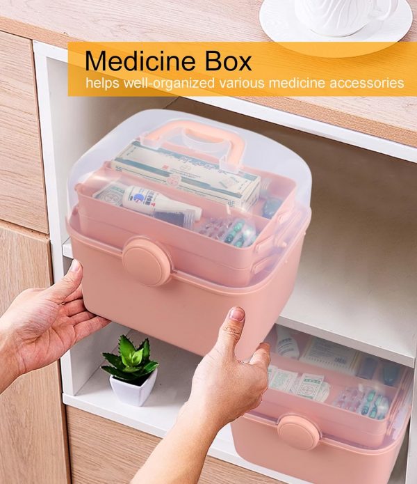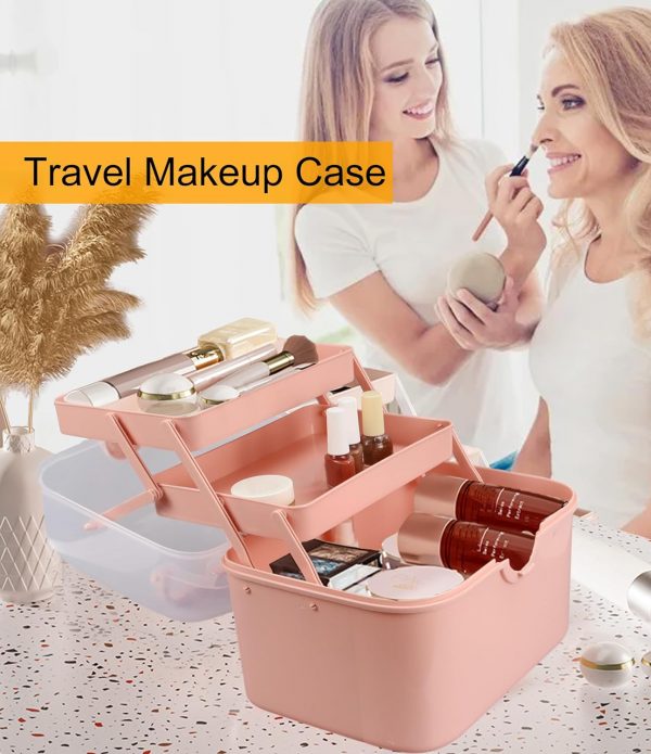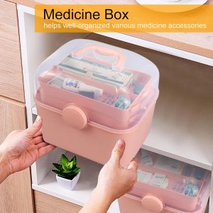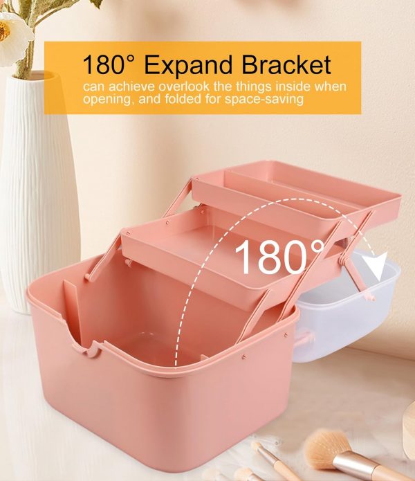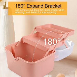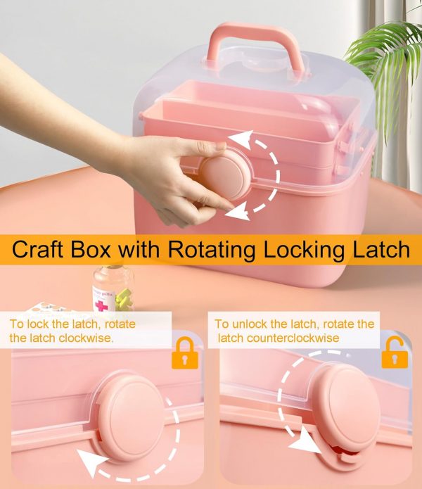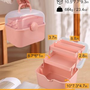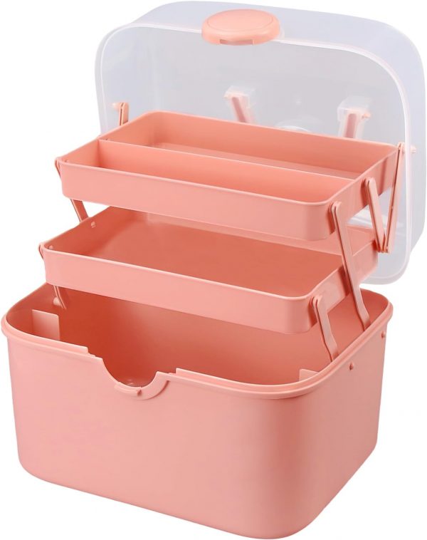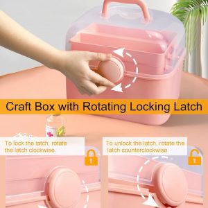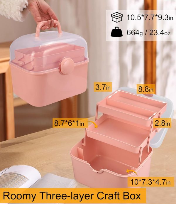 Qudqju Craft Box Organizer Pink Tackle Box Art Storage Box with Handle Sewing Box Organizer First Aid Box Girls Tackle Box Hair Accessories Organizer Travel Makeup Case 3 Layer Crafting Box