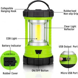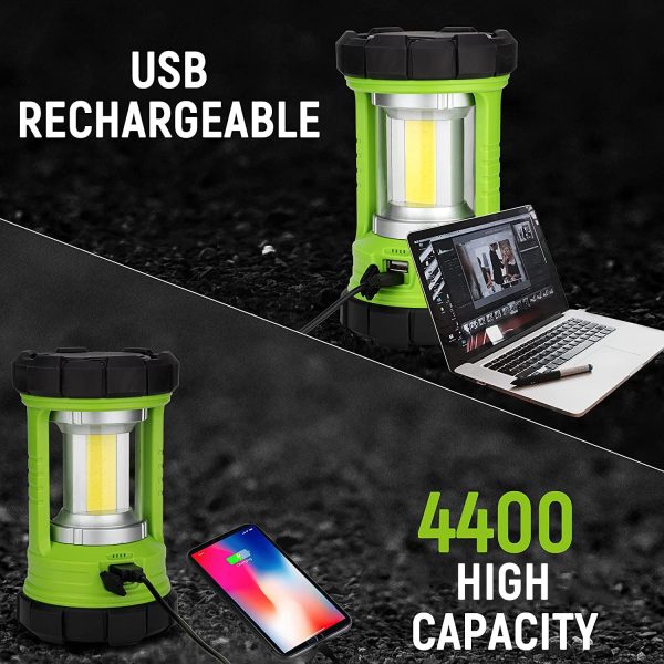 Rechargeable Camping Lantern, 3000LM 5 Light Modes Camping Light 4400 Capacity Phone Charger LED Impact-Resistant Flashlight Lantern Portable Waterproof Hurricane Lanterns for Emergency(Pale Green)