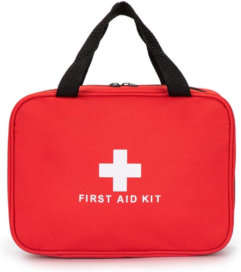 Red First Aid Bag Empty Travel Rescue Pouch First Responder Storage Medicine Emergency Bag for Car Home Office Kitchen Sport Outdoors (Red with Zippered Mesh Bags)