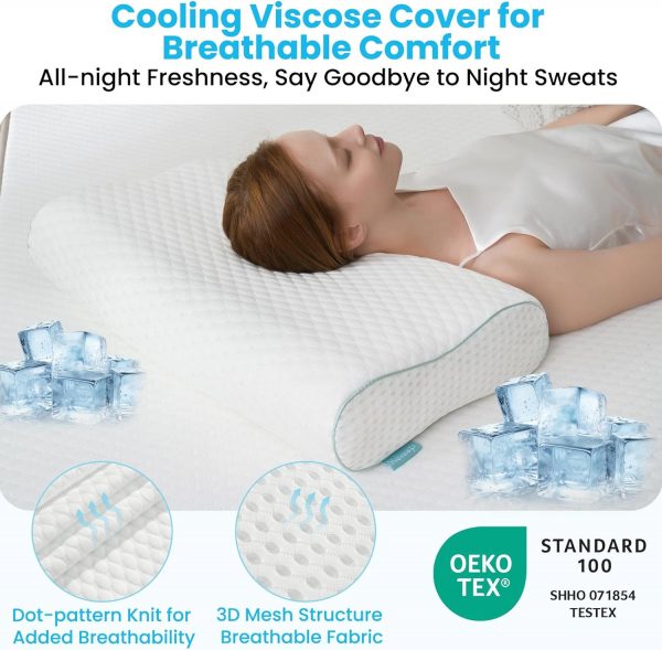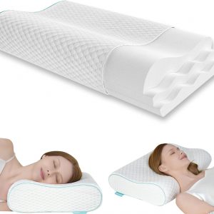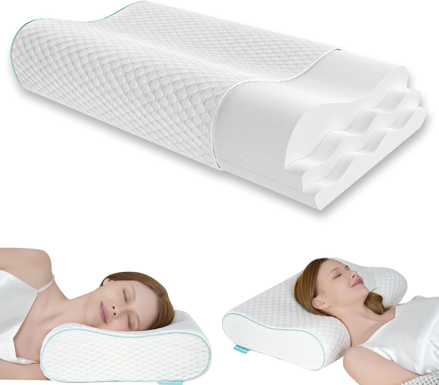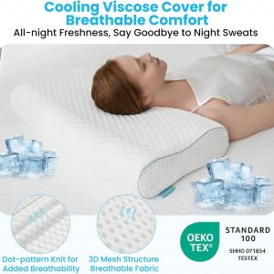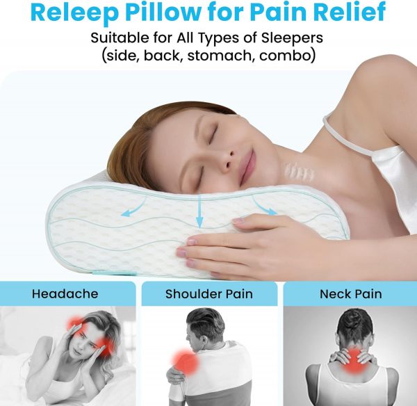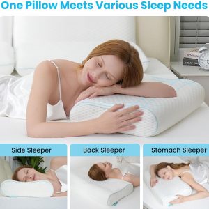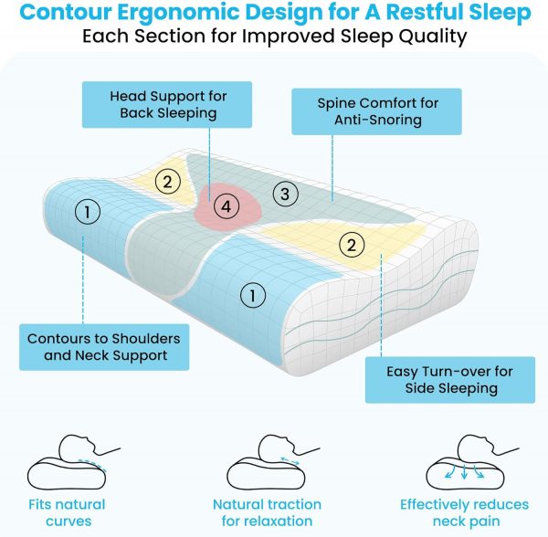 【Ergonomic Contour Design for All Sleepers】- The well-designed cervical neck pillow features ergonomic 4 zones to promote faster and deeper sleep. It fits the natural curvature of the cervical spine, providing adequate support and natural traction to relax the neck and shoulders. Suitable for any sleeping positions, including side sleeping, supine, stomach sleeping, back sleeping, and for those who prefer a lower pillow.