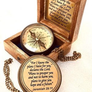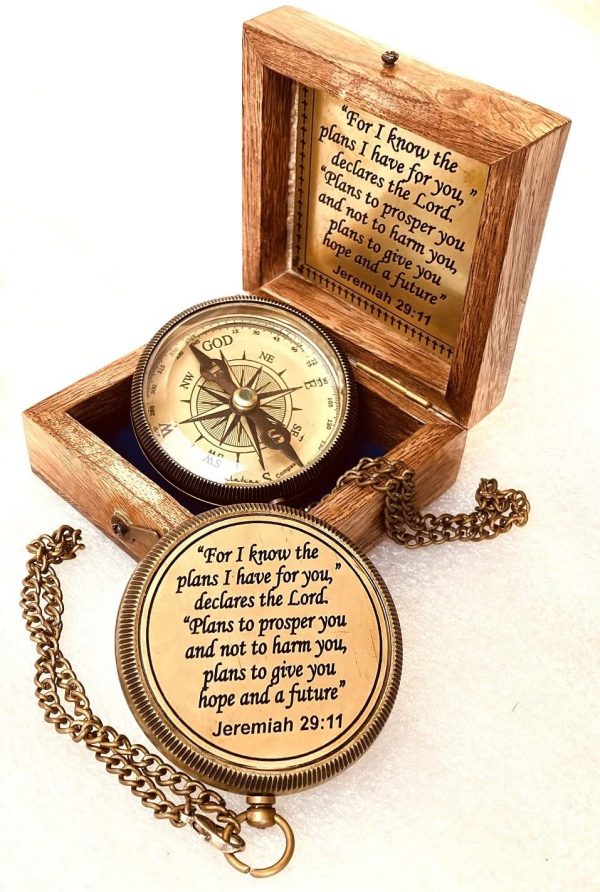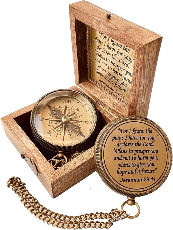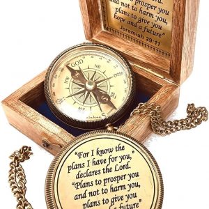 Religious Gifts for Men & Boys, Girls & Women – ” For I Know The Plans I Have For Your, Declares The LORD ” Jeremiah 29:11 Bible Scripture quote engraved compass in a handmade wood box makes a meaningful unique inspirational gifts for him and her.