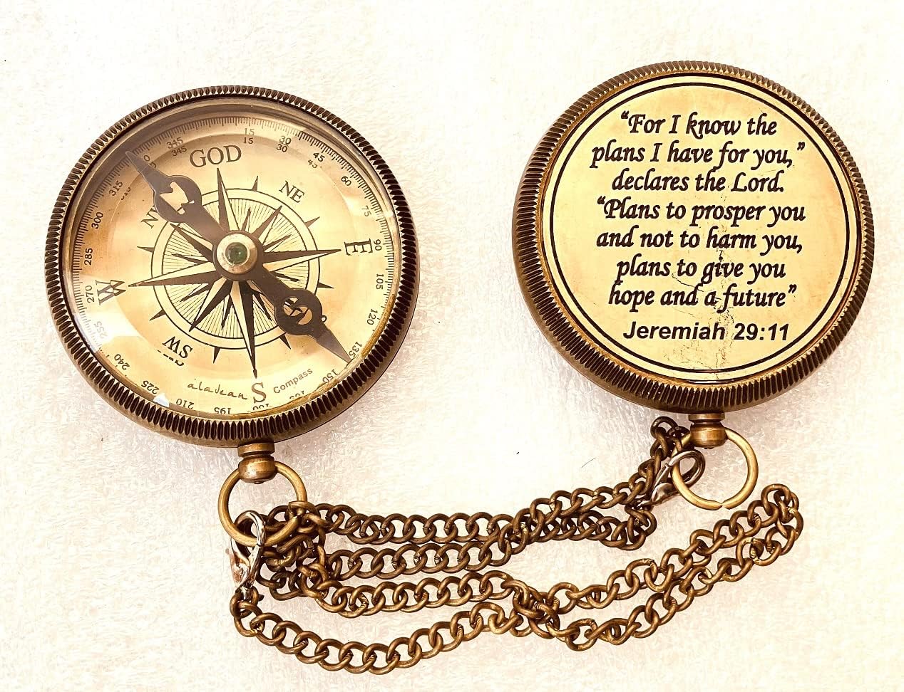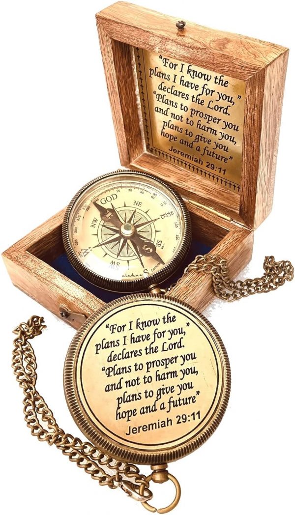 Religious Gifts – For I Know the Plans – Jeremiah 29:11 engraved Compass Unique Catholic Christian Communion Gifts for Boys Teenage Girl Graduation Baptism Sentimental Inspirational Men Women Gifts