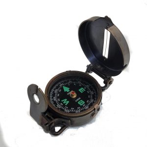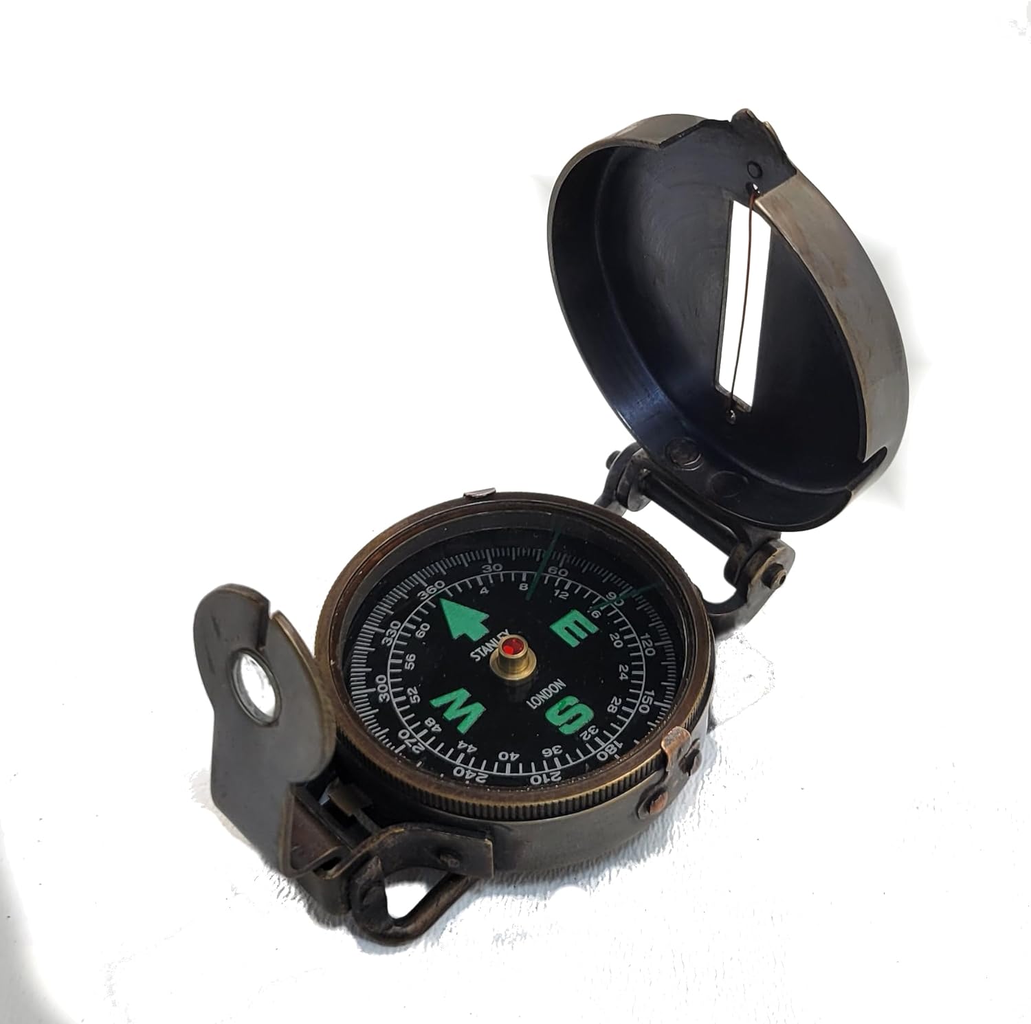 Solid brass antique reproduction of a Military WW2 Lensatic Compass