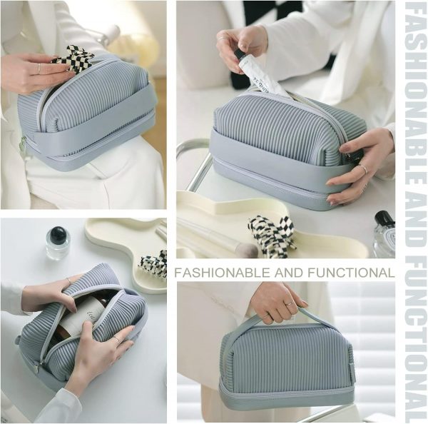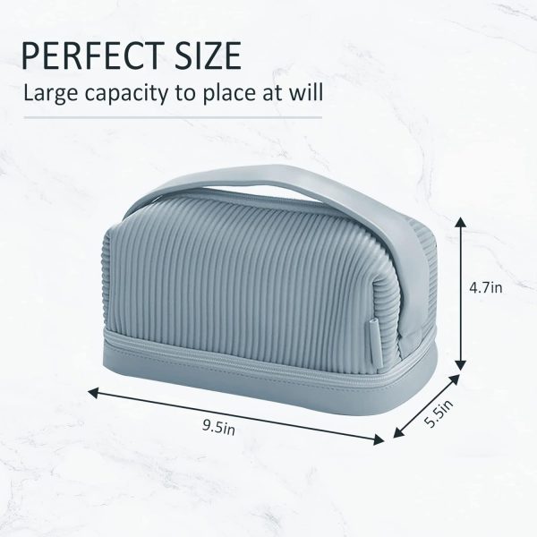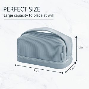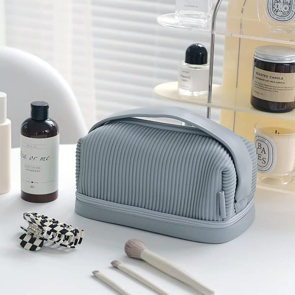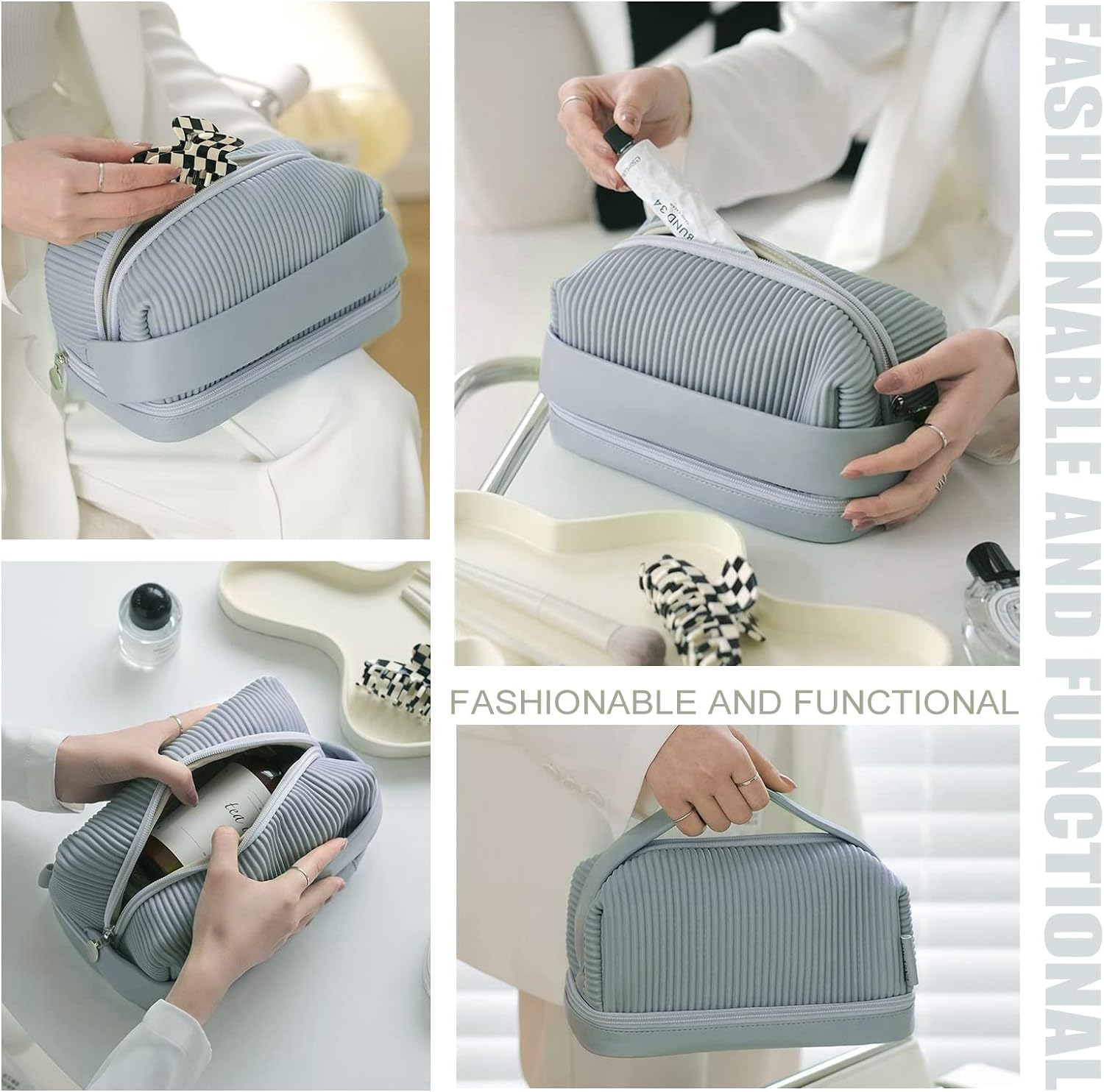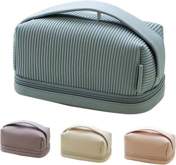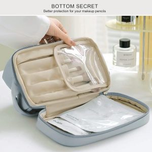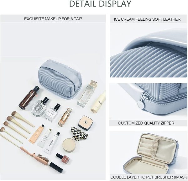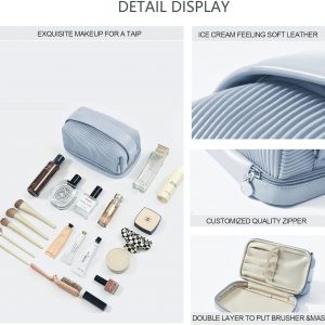 Four colors to select : cream blue, cream pink, cream beige and cream purple , which meets different style and taste generallyThe make up bags for women traveling meet all your travel requirements. The travel cosmetic bag, the make up bag organizer bag, the makeup bag travel cosmetic bag, the cosmetic bag with compartments, the large capacity travel cosmetic bag, YOU DESERVE IT.