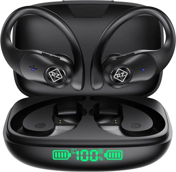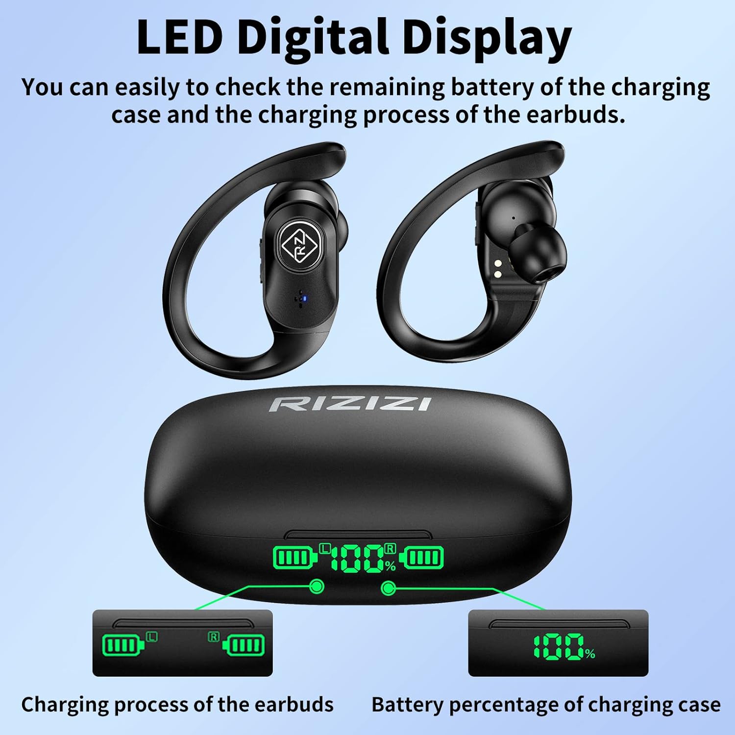 【LED Digital Display Charging Case】RIZIZI sports bluetooth earbuds have a LED digital display,it can display the quantity of electricity directly and clearly without open the lid.The number represents the percentage of charging case’s remaining power.And the 4 independent power consumption indicators represent the charging process of the earbuds.That makes the charge visible.no more worry about headphones running out of battery when go out.And you also can schedule the best charging time.