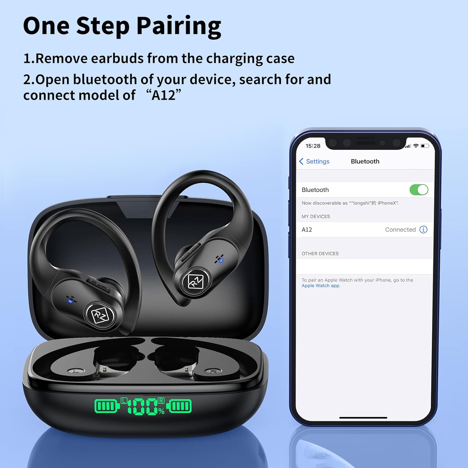 【Secure Simple Pairing&Wide Compatibility】 Remove the RIZIZI earbuds from the charging case,they will be activated and pair with each other automatically.Then open your device’s bluetooth to search “A12” to connect.After the first successfully connection,the sport earbuds will automatically connect to the last pairing device when next time use. Our earbuds are widely compatible with IOS system devices,most android system devices and most devices with bluetooth.operation is simple and fast.