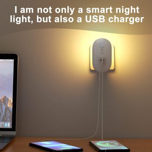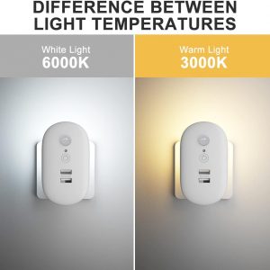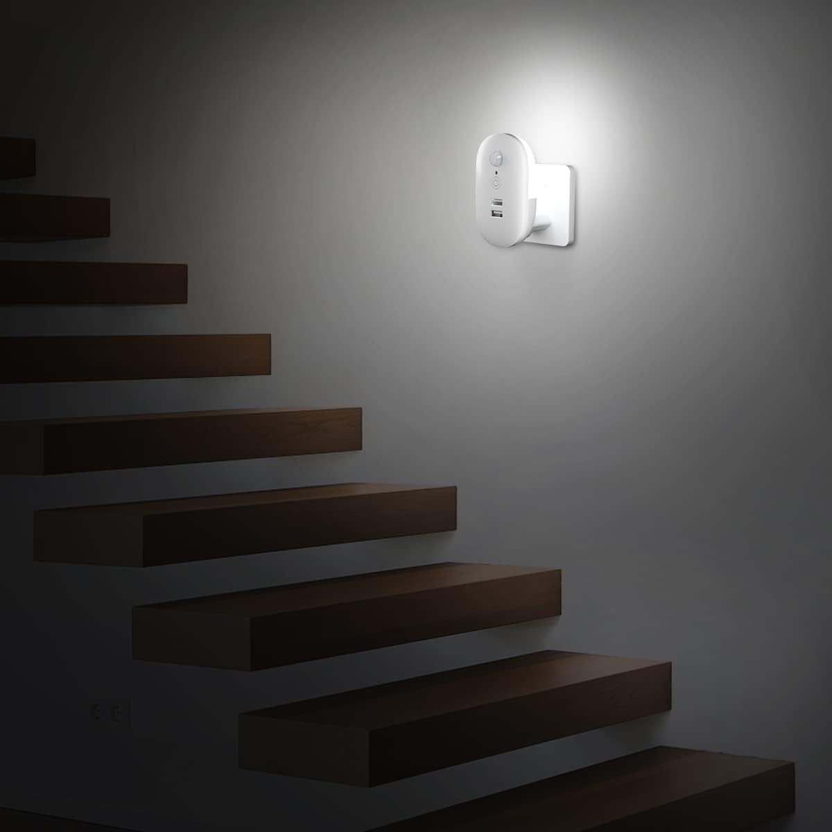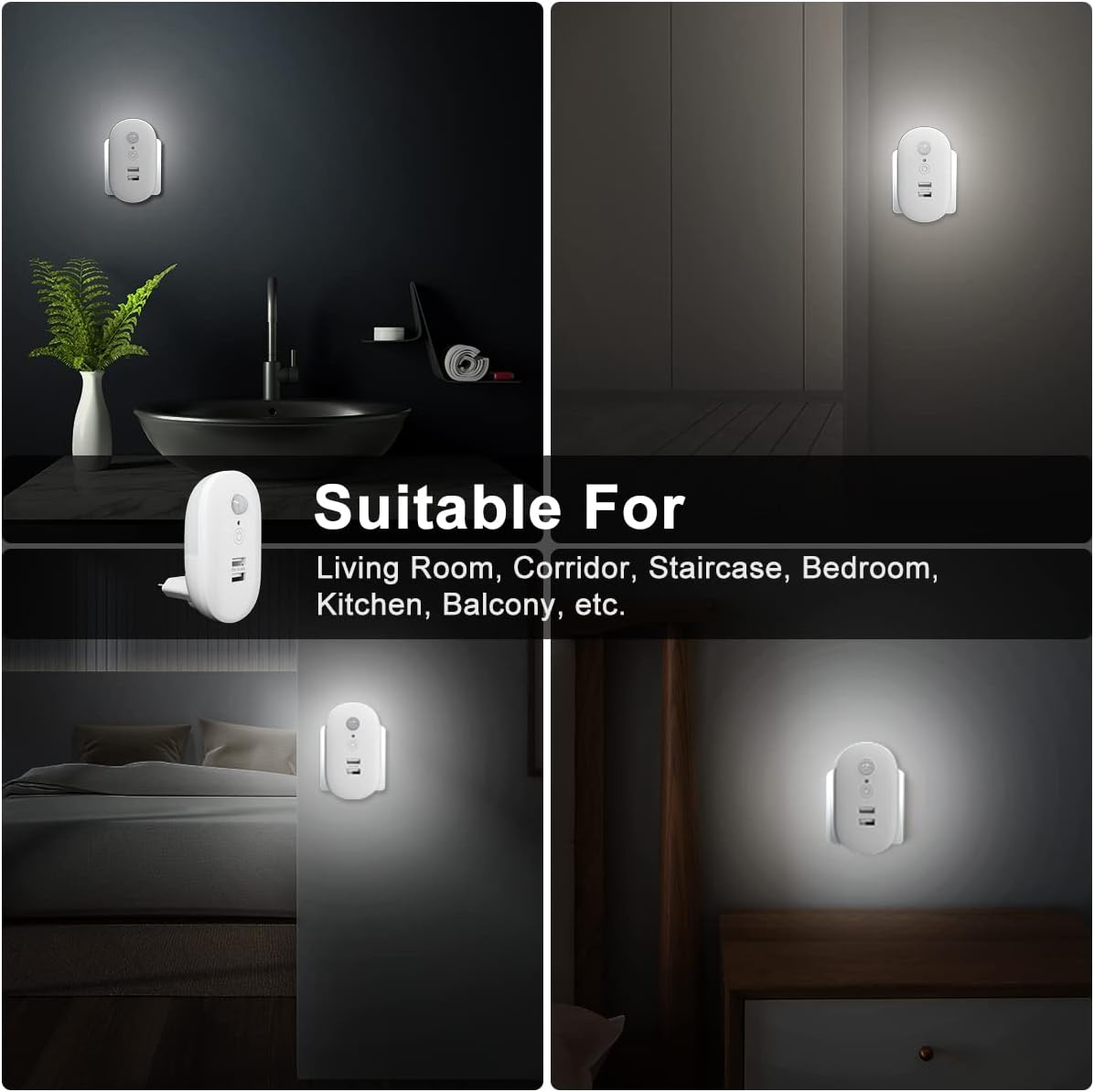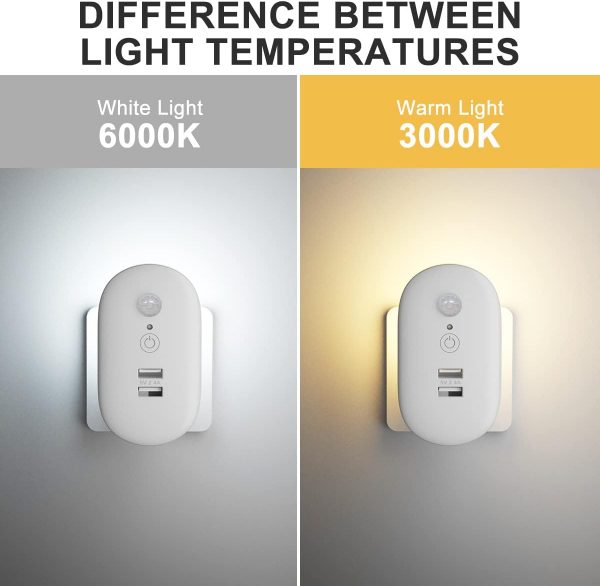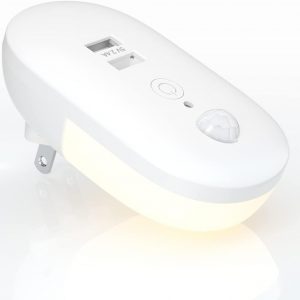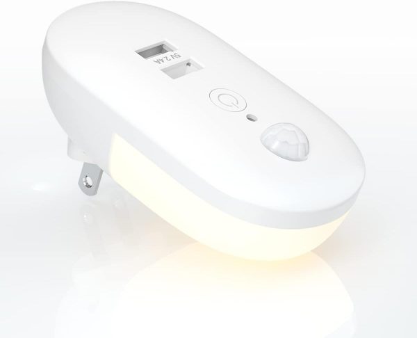 Rlawtdor Plug-in Motion Sensor Night Light, 1.5W LED Infrared Sensor Lamp with 2 USB Charging Ports for Bedroom, Living Room, Kitchen, Toilet, Corridor, Stairs, etc (Oval, White Light)