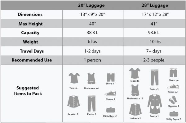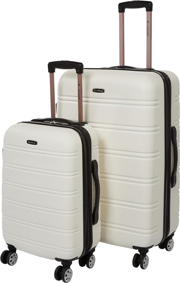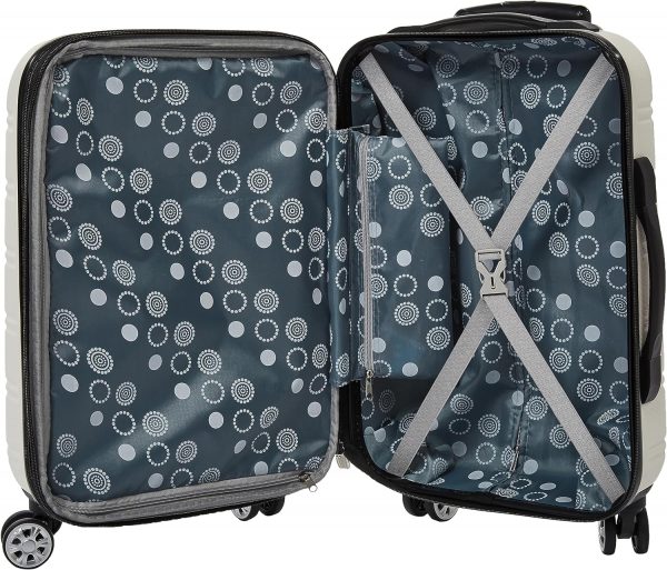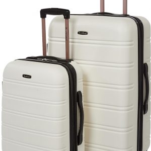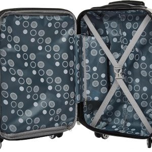 This 2 pc. set is made of ABS. This material is extremely lightweight, durable, and protects the contents of your luggage. Multi-directional double spinner wheels rotate 360 degrees for easy maneuverability. This luggage allows you to pack more while avoiding the excess weight surcharges imposed by most airlines. Expandable Multi-directional spinner wheels for easy maneuverability Modern internal chrome telescoping handle with push button handle. Interior mesh and zip pocket and elastic pocket *5 year * 22″x 13″x 9″ (with wheels) weighs 6 lbs, 28″x17″x12″ weighs 10 lbs.